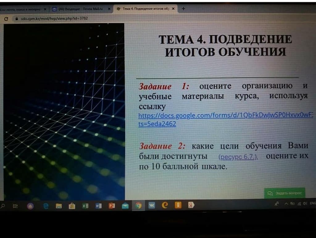 27.07-04.08.20ж. аралығында Алматы құрылыс және халықтық кәсіпшілік колледжінің директордың оқу ісі жөніндегі орынбасары және жоғары санатты химия пәнінің оқытушысы Маткасимова Сая Жанатбековна химия пәні бойынша жаңартылған мазмұндағы оқу бағдарламасына сәйкес қысқа мерзімді сабақ жоспарын әзірлеу бойынша, педагогикалық шеберлік орталығының ұйымдастыруымен онлайн желісі арқылы zoom, google қосымшалары арқылы курстан өтті. Бағдарлама тренері- Батанова Жанар Жумабековна.