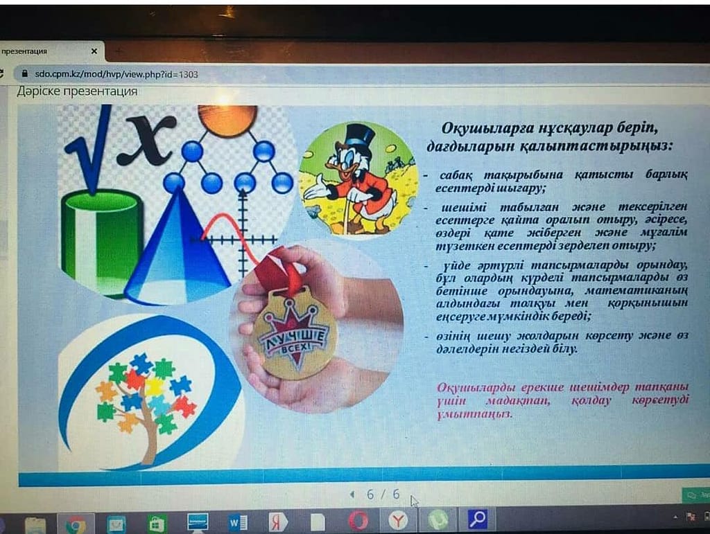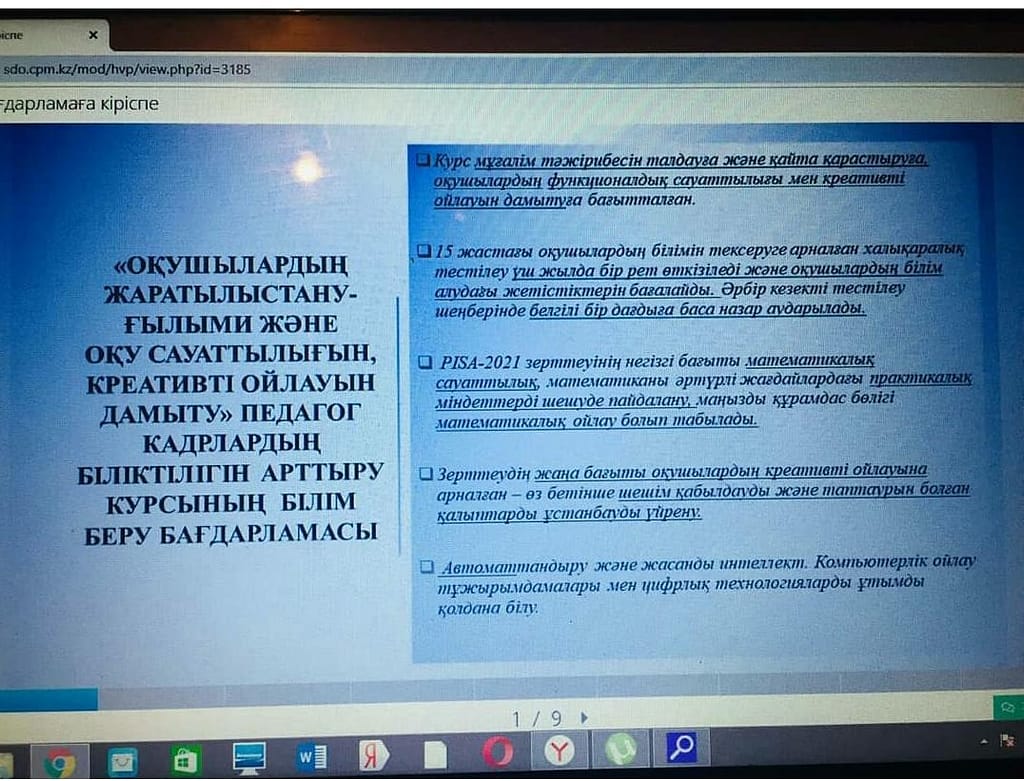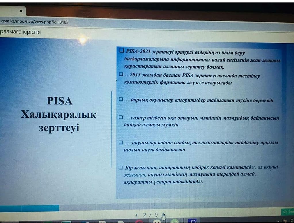 27.07-04.08.20ж. аралығында Алматы құрылыс және халықтық кәсіпшілік колледжінің жоғары санатты математика пәнінің оқытушысы Жұбаниязова Айдынкүл Жұбайқызы математика пәні бойынша жаңартылған мазмұндағы оқу бағдарламасына сәйкес қысқа мерзімді сабақ жоспарын әзірлеу бойынша, педагогикалық шеберлік орталығының ұйымдастыруымен онлайн желісі арқылы zoom, google қосымшалары арқылы курстан өтуде. Бағдарлама тренері- Батанова Жанар Жумабековна.