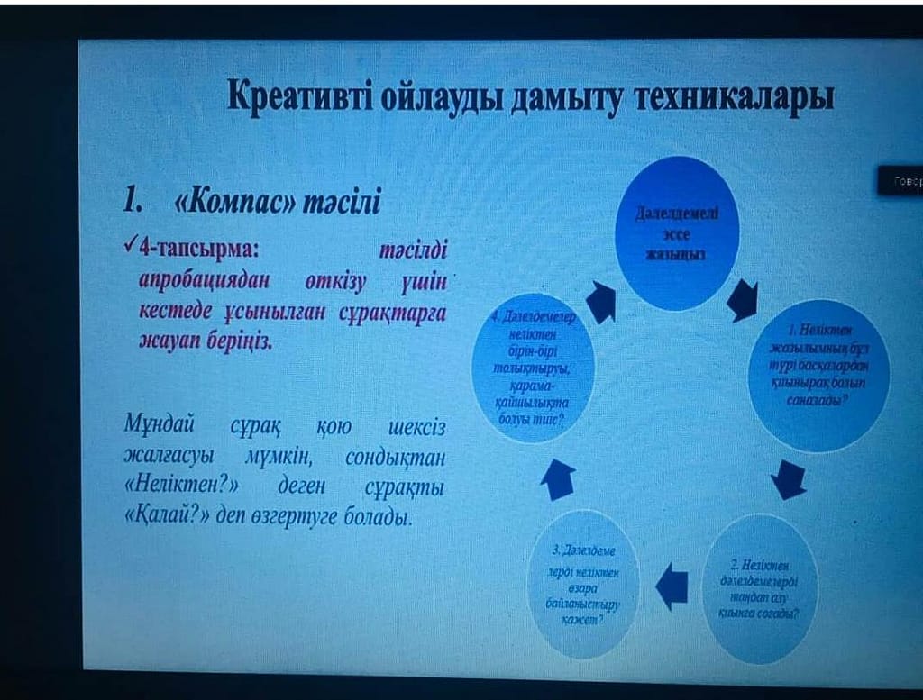 Бағдарламаның мақсаты: Оқушылардың функционалдық сауаттылығын дамытудағы педагогтердің кәсіби құзыреттілігін жетілдіру. Оқушылардың функционалдық сауаттылығын және шығармашылық ойлауын дамытуға арналған әдіс- тәсілдерді қолдануды үйрену, креативті ойлауды дамыту.