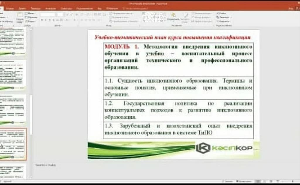 Рассматриваемые модули : Методология внедрения Инклюзивного обучения в учебно-воспитательный процесс организации технического и профессионального образования.