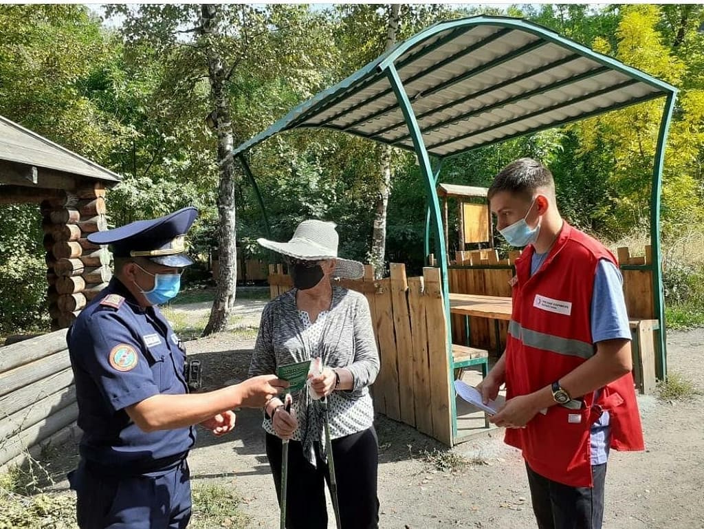 Сегодня 6 сентября 2020 года Торянов Виталий студент АКСиНП группы 18-06 волонтёр организации “Красный полумесяц”совместно с сотрудниками ОЧС Медеуского района провели обход гор Медеу и гор Бутаковка в целях недопущения возгорания костров в охраняемой природной зоне. Проводили профилактическую беседу с людьми о том, что нельзя разжигать костры в местах, где не положен розжиг костров.