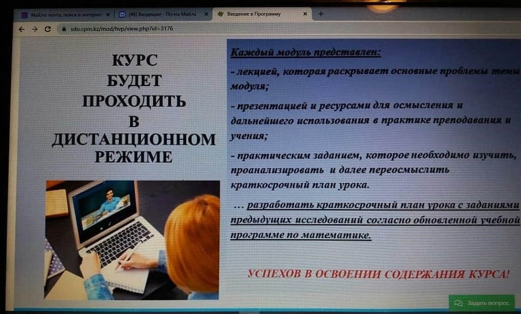 27.07-04.08.20ж. аралығында Алматы құрылыс және халықтық кәсіпшілік колледжінің директордың оқу ісі жөніндегі орынбасары және жоғары санатты химия пәнінің оқытушысы Маткасимова Сая Жанатбековна химия пәні бойынша жаңартылған мазмұндағы оқу бағдарламасына сәйкес қысқа мерзімді сабақ жоспарын әзірлеу бойынша, педагогикалық шеберлік орталығының ұйымдастыруымен онлайн желісі арқылы zoom, google қосымшалары арқылы курстан өтті. Бағдарлама тренері- Батанова Жанар Жумабековна.